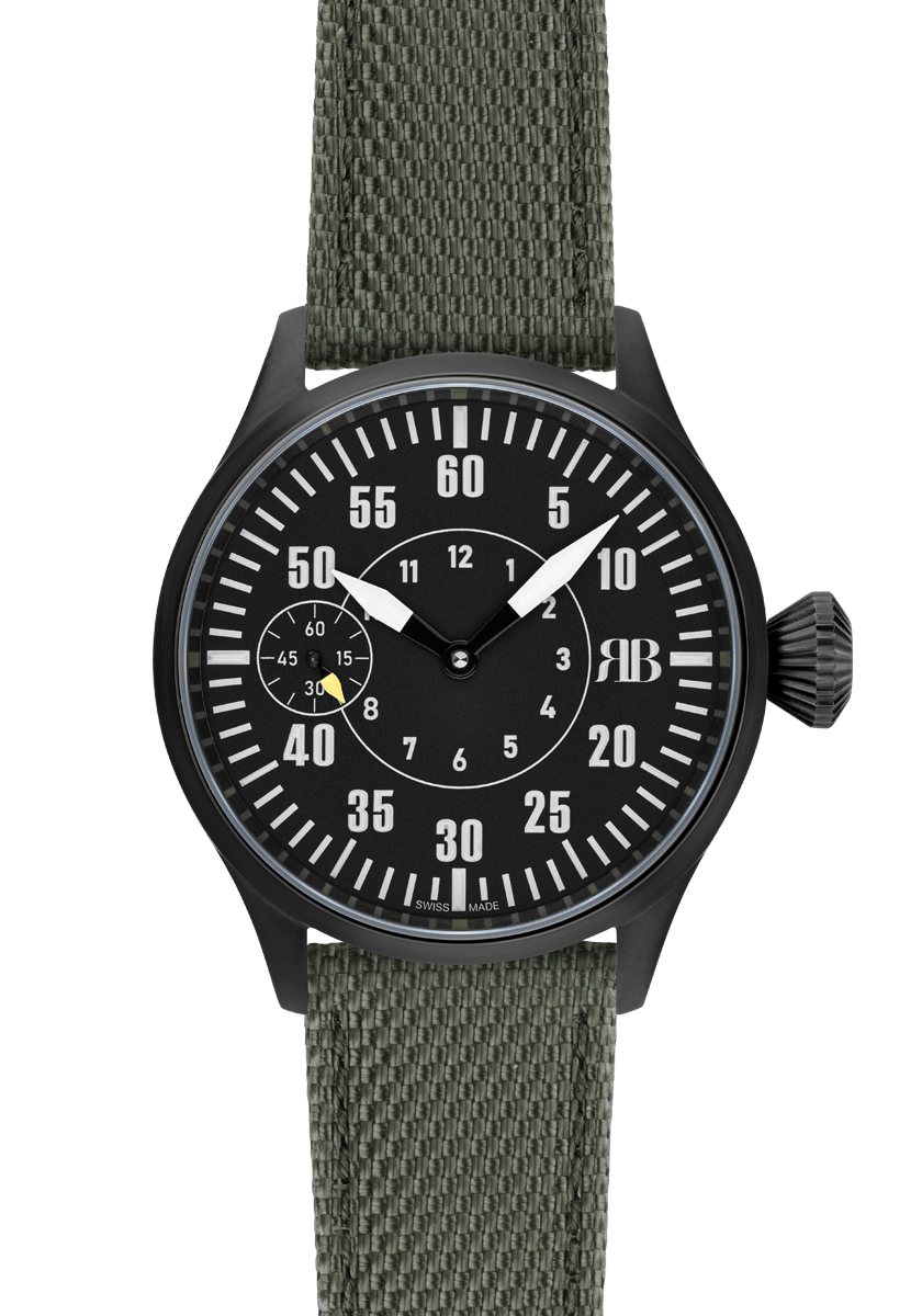 Mit ihren fluoreszierenden Ziffern, der Minuterie aussen und den Stunden innen bietet sie eine klare, gut ablesbare Anzeige, inspiriert von den Instrumenten eines Flugzeugcockpits. Das Herzstück dieser Uhr ist das bewährte Unitas 6497 – ein zuverlässiges mechanisches Uhrwerk mit einer Gangreserve von rund 46 Stunden.