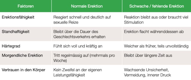 Eine normale Erektion fühlt sich verlässlich an. An dieser Tabelle erkennen Sie erste Anzeichen, wenn das nicht mehr der Fall ist.
