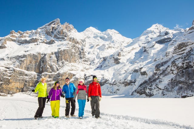 Der Oeschinensee zeigt sich im Winter von seiner stillsten Seite. Zwei markierte, verschieden lange Wege laden zum Erkunden ein. Begeben Sie sich auf dem Ice Walk auf einen Rundweg über den See. Das ist übrigens auch mit Schneeschuhen möglich. Oder wandern Sie ab der Bergstation Oeschinensee via Läger zum Seeufer.