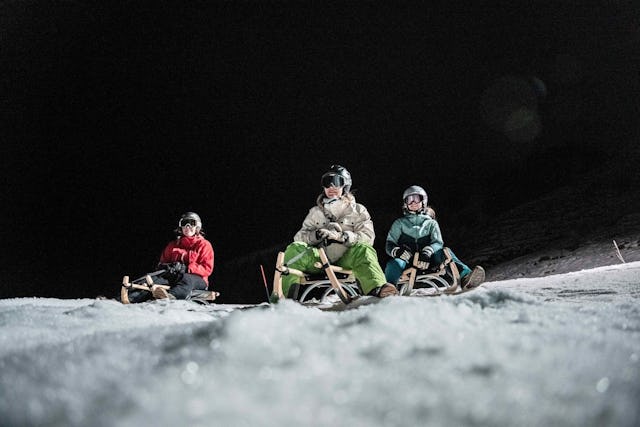 Wenn die Nacht über den Schwarzsee hereinbricht, ist es Zeit für einen besonderen Adrenalinkick! Sofern es die Wetterbedingungen zulassen, geht es vom Bärghuus Riggisalp auf der beleuchteten und als mittelschwer eingestuften Schlittelpiste rund vier Kilometer rasant bergab bis nach Schwarzsee. Vor oder nach dem Abenteuer kann man im Bärghuus Riggisalp ein schmackhaftes Fondue geniessen. Die Kombination aus Spass, Natur und Kulinarik wird jeweils Donnerstag-, Freitag- und Samstagabend angeboten.