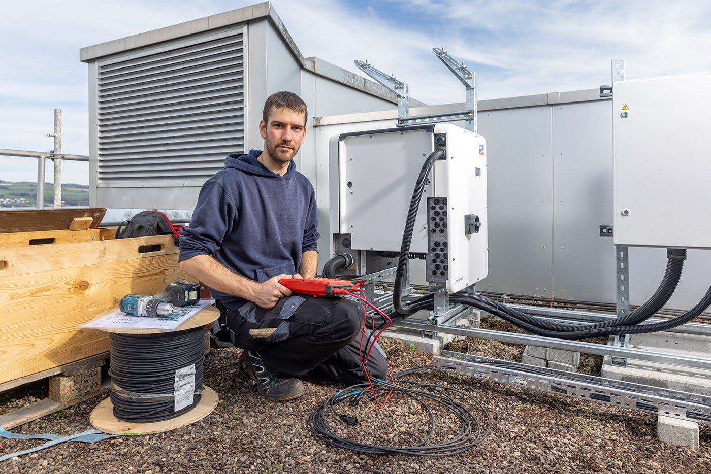 Auch für die Betriebe gibt es einiges zu tun, wenn sie einen neuen Lehrberuf anbieten wollen, erklärt Simon Cassani von Jenni Energietechnik. Der wichtigste Punkt: Sie brauchen eine Ausbildungsbewilligung des Kantons. Dieser prüft, ob ein Unternehmen bieten kann, was nötig ist, damit die Lernenden nach dem Abschluss über den Strauss an Fähigkeiten verfügen, den sie brauchen. Zu den Anforderungen gehört, dass die Person, die die angehenden Solarinstallateur*innen betreut, die Ausbildung als Berufsbildner*in abgeschlossen hat. Was für Cassani bedeutet, dass er oder sie selbst für ein paar Module die Schulbank drücken muss.
