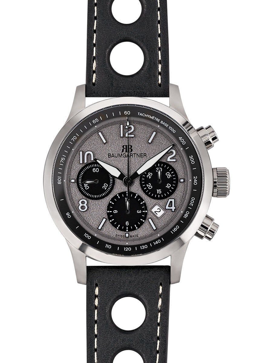 Ein besonderes Merkmal des neusten Zeitmessers im Sortiment von «RB Baumgartner» ist die Tachymeterskala auf dem Zifferblatt, die es ermöglicht, Geschwindigkeiten präzise zu messen – eine Funktion, die für jeden Motorsportenthusiasten unverzichtbar ist. Darüber hinaus bietet die Datumsanzeige zwischen 4 und 5 Uhr zusätzliche Funktionalität und macht die Uhr so zu einem idealen Begleiter.