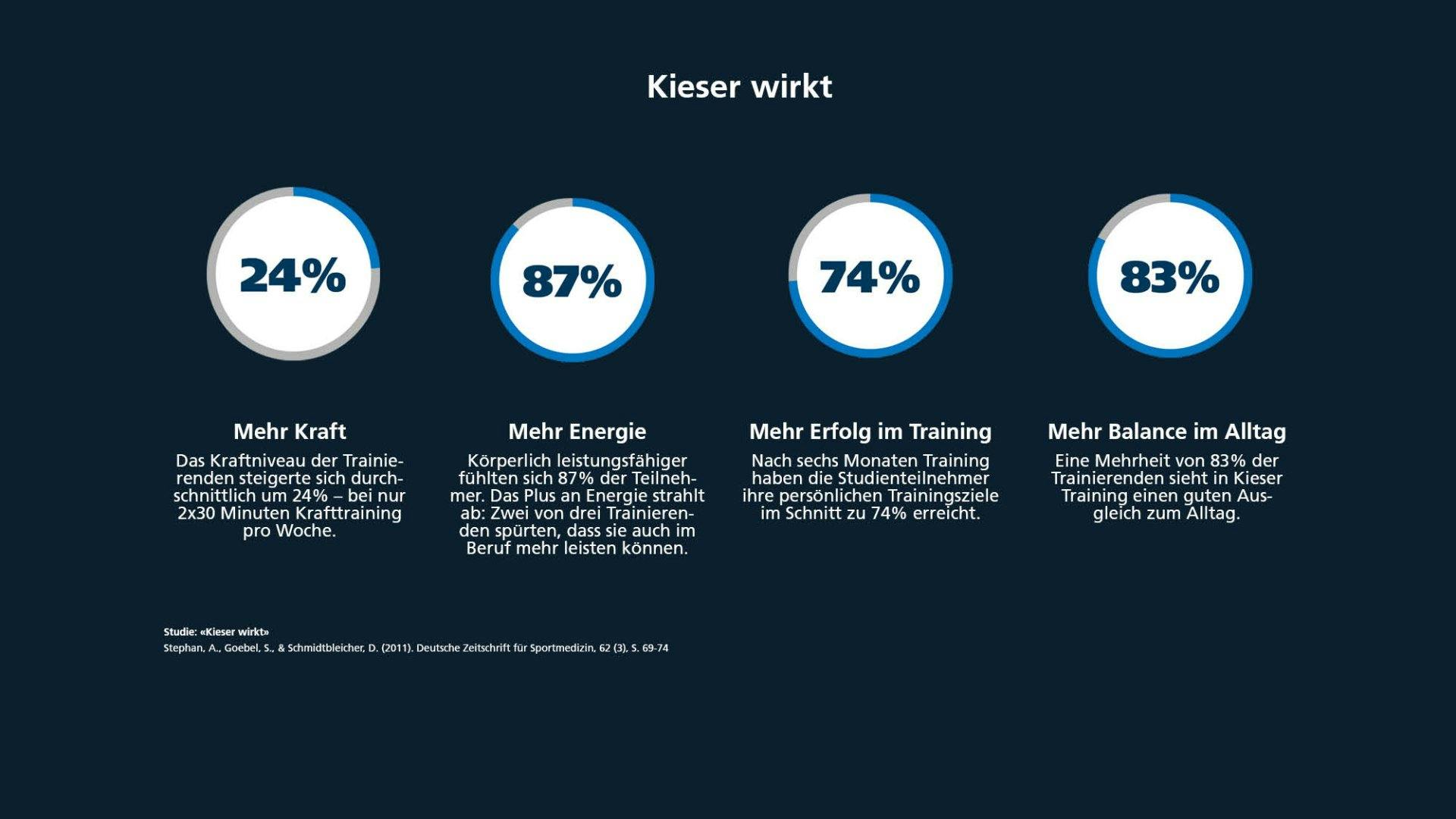 Das zeigt eine von Kieser durchgeführte und von einem unabhängigen wissenschaftlichen Gremium begleitete Studie mit 531 Teilnehmenden. Bereits ein halbes Jahr Training mit zwei Einheiten pro Woche reichte aus, um Lebensqualität und Leistungsfähigkeit deutlich zu steigern.